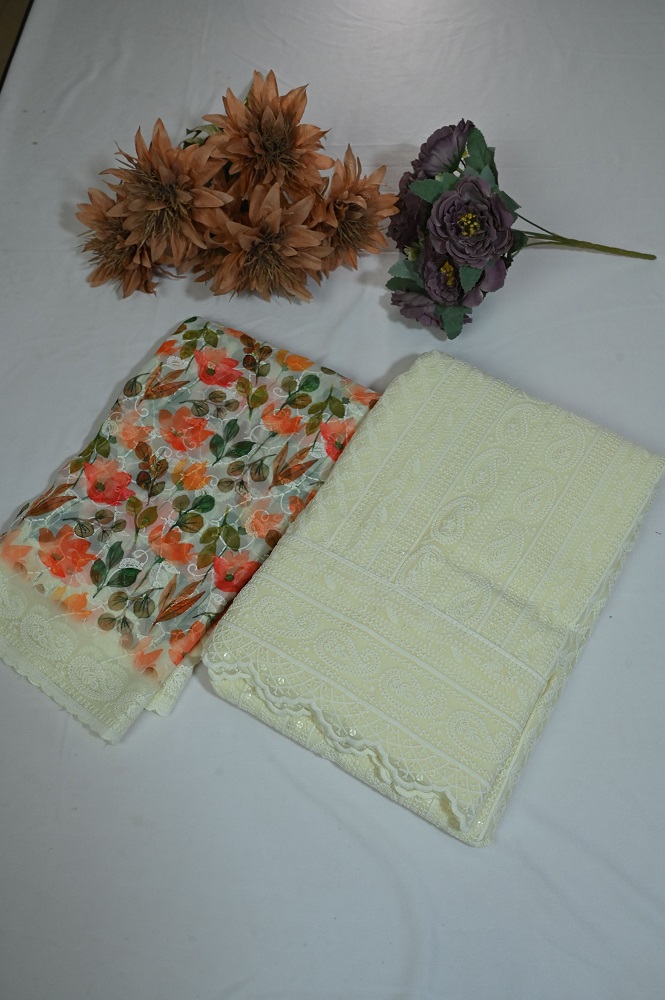 Be the first to review “Georgette suit with self embroidery and printed dupatta and plane bottom”